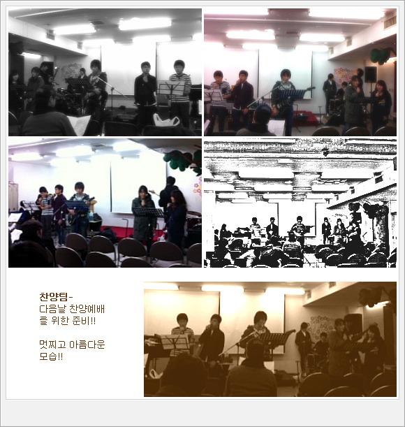 다음 날 찬양예배가 있는 날은 더 많은 시간 열연(열심히 연습)하는