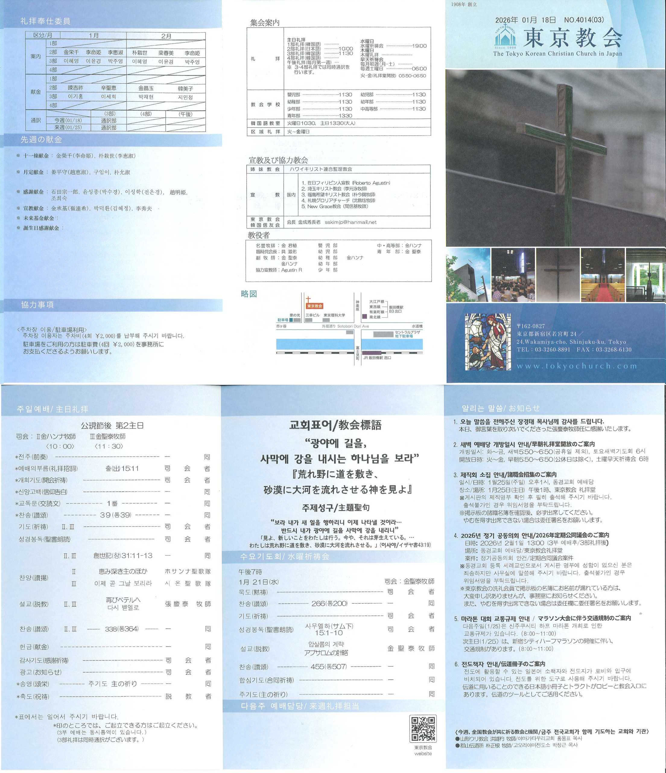 일시/日時: 1월25일(주일) 오후1시, 동경교회 예배당