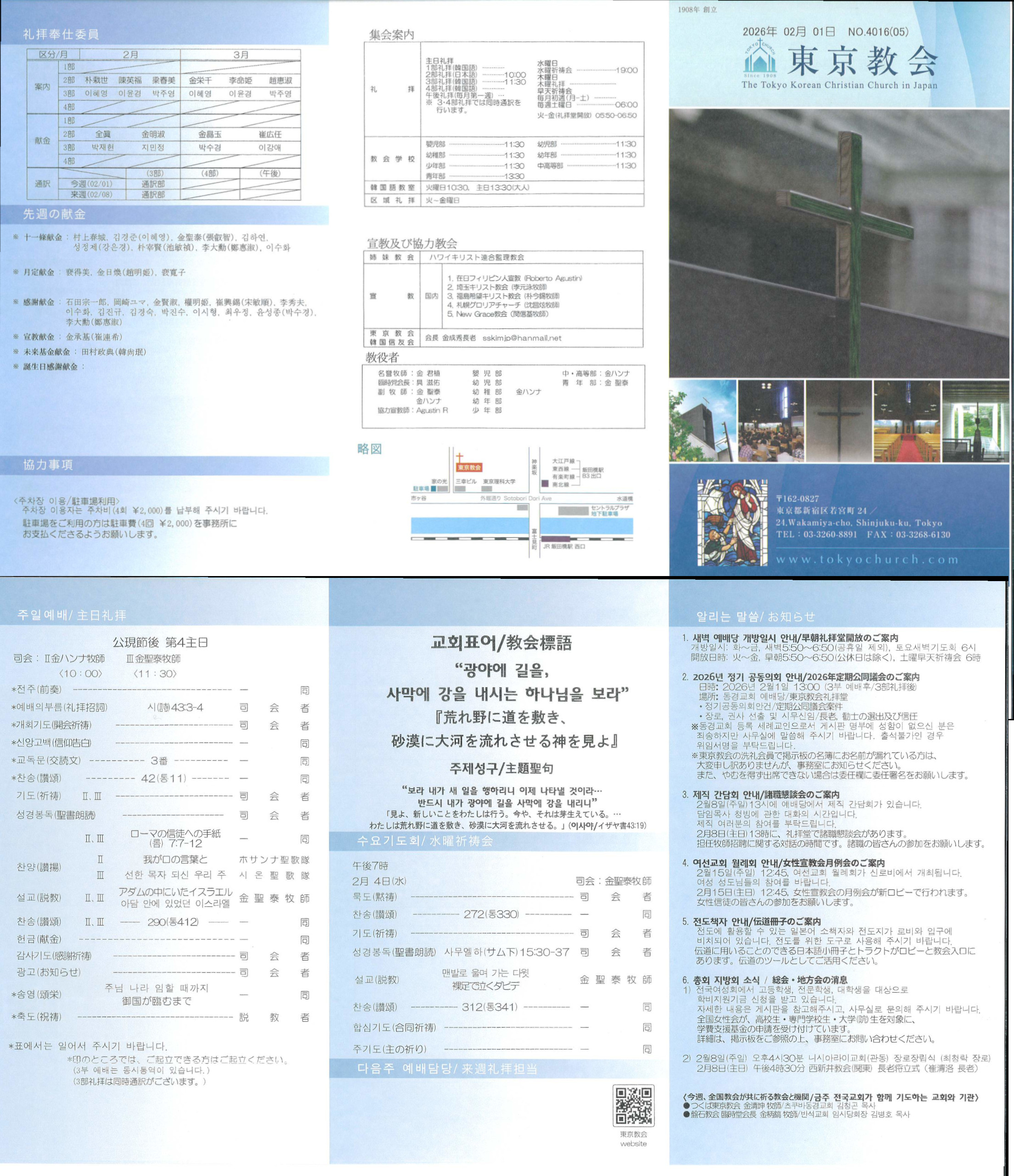 日時: 2026년 2월1일 13:00 (3부 예배후/3部礼拝後)
