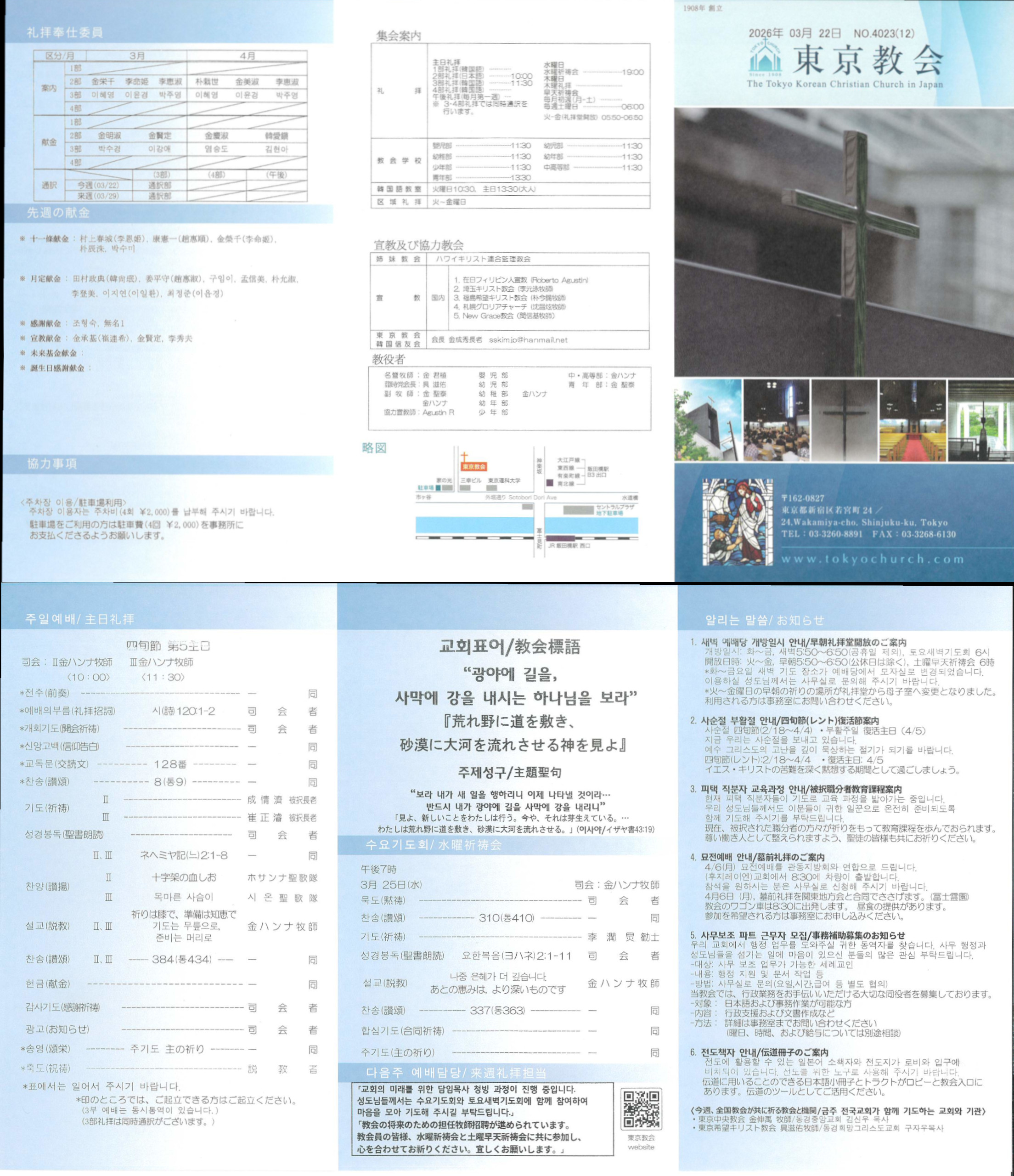 2026년 03월 22일주일 교회안내 |